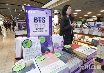 【NEWSIS】防弾少年団のカムバック公演まであと二日と迫った19日午後、ソウル・鍾路の大手書店「教保文庫」に、防弾少年団メンバーの推薦図書が並んでいる様子。 防弾少年団のリーダー、RMが推薦したラ..