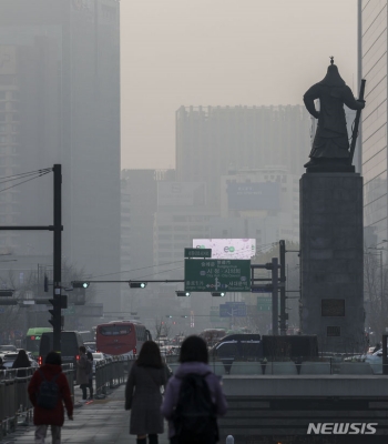 【NEWSIS】ソウル首都圏と韓国中部地方を中心にPM2.5など微小粒子状物質の濃度が「不良」となった23日、ソウルの中心部はかすんでいた。