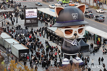 【NEWSIS】18日午後、ソウル市鍾路区の光化門広場で、「2023リーグ・オブ・レジェンド(LoL)ワールドチャンピオンシップ連携eスポーツ・ファン・フェスト」が開催された。写真は大勢の来場者でに..