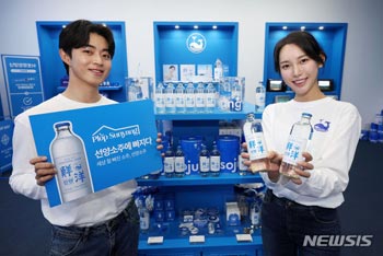 20日、ソウル市城東区の鮮洋のポップアップストア「Plop Sunyang」で、オープン記念をPRするコンパニオンの様子。このポップアップストアにはブランド体験およびグッズ、試飲などさまざまなゾーンが..