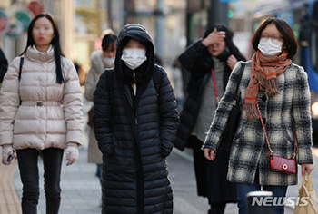 【NEWSIS】初冬の寒さが続く14日午前、ソウル市中区で、厚手のコートを着て出勤する人々。