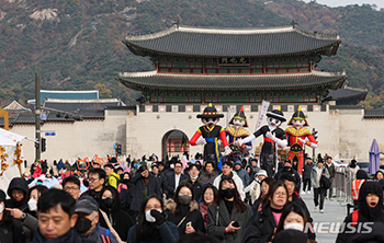 ソウル市鍾路区の光化門広場で11日午前、「第14回歩行者の日」に合わせてウォーキングイベントが行われている様子。