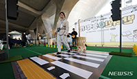 【NEWSIS】12日、ソウル市中区の東大門デザインプラザで、「2023伴侶人能力試験」が行われた。写真は実技試験を受ける「伴侶人(飼い主)」と「伴侶犬(飼い犬)」。