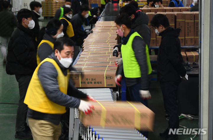 2024年度大学修学能力試験を三日後に控えた13日、修学能力試験の問題用紙と解答用紙が、世宗市内の印刷工場から各地域に配送された(共同取材写真)。