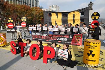 「日本放射性汚染水海洋投棄阻止共同行動」のメンバーたちが2日午前、ソウル市鍾路区の光化門広場で記者会見を行い、日本による3回目となる福島原発汚染水の海洋投棄を糾弾し、日本産水産物の輸入中断を促した。