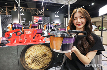 ソウル市瑞草区の新世界百貨店江南店で30日、フィスラー・コリアによるビタビット・プレミアム70周年圧力鍋発売記念イベントが行われ、コンパニオンらが商品を紹介した。フィスラー・コリアは、1950年代の..