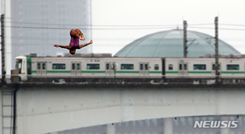 13日午後、ソウル市麻浦区の楊花大橋で開かれた「レッドブル・ソウルダイブ」にて、ハイダイバーのザンティア・ペニーシ選手(XANTHEIA PENNISI. レッドブル所属、オーストラリア)が演技を披露..