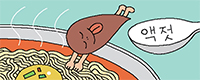 インスタントラーメンを作る時は韓国の魚しょう(ぎょしょう)「エクチョッ」を入れるとコクが出る。麺やスープなどを入れて煮た後、最後の仕上げに大さじ1杯ほど入れる。