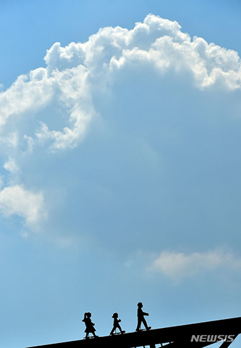さわやかな初秋の天気となった11日、大邱市中区の新川橋から見た青空は、入道雲と見事な調和を作り上げていた。