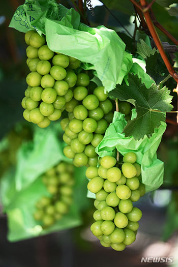【NEWSIS】大気が冷え、露ができはじめるとされる二十四節気上の「白露」まであと一日となった7日午前、全羅南道潭陽郡のあるブドウ畑。秋夕(チュソク=中秋節、今年は9月29日)の贈り物用として出荷を..