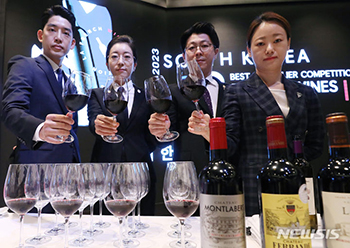 6日、ソウル市中区のアンバサダー・ソウル・プルマンホテルで開かれた「第22回韓国ソムリエ大会」決勝を前に、予選を通過したソムリエのノ・ユンスさん、イ・ユンヒさん、イ・ヒョンテクさん、ユン・ヒョジョンさ..