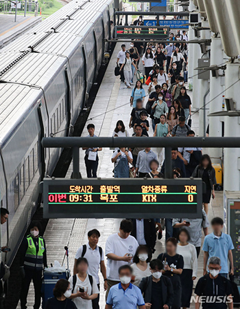 2004年4月に運行を開始した韓国高速鉄道(KTX)の利用客が本日、通算10億人を超える見通しだ。写真は31日午前、ソウル駅で列車を降りる市民たち。
