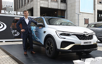 ルノー・コリア自動車のステファン・デブレイス社長が31日、ソウルのプレスセンターで「ルノー・エクスペリエンス」記者懇談会を終えた後、ビル前の広場に用意された展示および試乗ゾーンでポーズを取っているとこ..