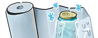 ぬるい缶飲料は水でぬらしたキッチンタオルで包んで冷凍庫に入れると、そのまま冷やすよりも早く冷たくなる。