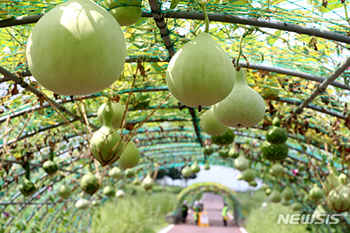 二十四節気の一つ、「立秋」を翌日に控えた7日、ソウル市麻浦区のハヌル公園では、ひょうたんが鈴なりになっていた。