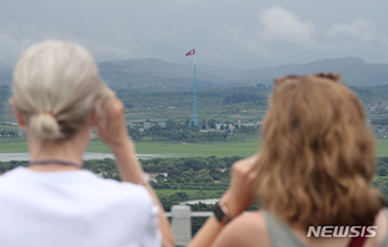 停戦協定70周年を前に都羅展望台を訪れた観光客