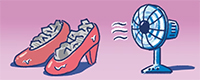 雨でぬれた革靴は風通しの良い日陰で乾かさなければならない。革靴の中に新聞紙をくしゃくしゃにして詰め、扇風機の風に当てると早く乾く。