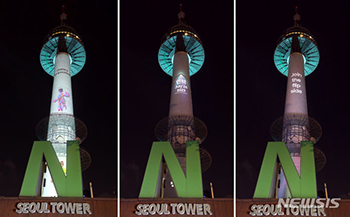ソウル市竜山区の南山にあるNソウルタワーに24日、サムスン電子のイベント「Galaxy Unpacked」に関する夜間デジタル屋外広告が表示されている。サムスン電子は史上初めて韓国国内で「Galax..