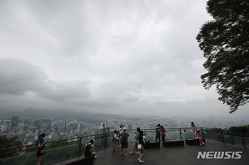 全国の大部分の地域で雨が降った24日、ソウル市内の南山から眺めた都心の空は黒い雲で覆われ、どんよりしていた。