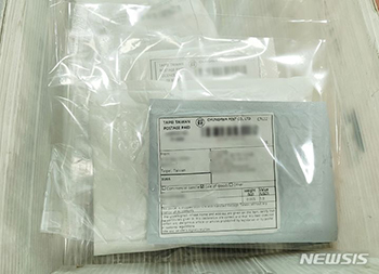 24日午前、済州市老衡洞の済州郵便集中局に到着した台湾発の正体不明の郵便物。