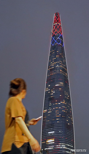 6・25戦争休戦70周年…ロッテワールドタワーに「太極旗」 /ソウル