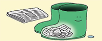 ぬれた長靴は中に新聞紙を
