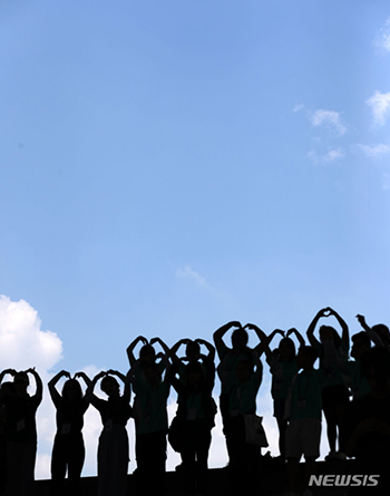 【NEWSIS】韓国中部地方の梅雨が小康状態になった19日、ソウル中心部・忠武路の上空には雲の合間から青い空が見えた。気象庁は今週末ごろ、再び梅雨前線の影響で全国的に大雨になると予報している。