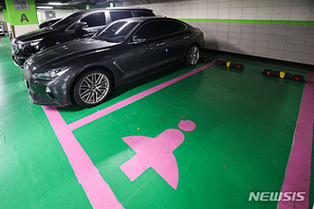 ソウルの公共施設や大規模施設に整備されていた「女性優先駐車場」が、登場から14年で姿を消し、「家族配慮駐車場」に切り替えられる。写真は17日午前、ソウル市内のある公営駐車場内の女性優先駐車区域の様子。