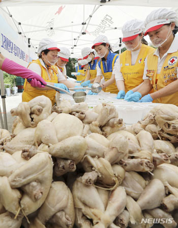 ソウル市蘆原区上渓洞の大韓赤十字社ソウル支社北部奉仕館で7日、初伏(三伏の一つ、夏至後の3回目の庚〈かのえ〉の日)を迎えるに当たり、恵まれない人たちのための夏の支援イベントが行われ、高麗亜鉛の従業員..