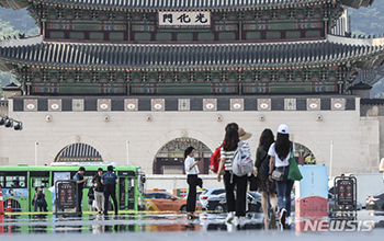 ソウルの昼間の気温が35度まで上昇した3日、ソウル市鍾路区の光化門広場では陽炎が立ち上っていた。