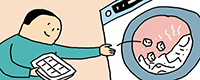 服がしわくちゃになのにアイロンがないという時は、氷を使う方法がある。しわくちゃの服と氷を2・3個入れてから乾燥機で乾燥させるとシワが伸びる。