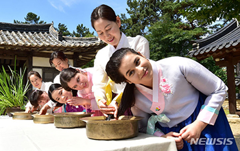 端午(旧暦5月5日、今年は6月22日)を二日後に控えた20日午前、慶尚北道慶山市の嶺南大学民俗村では、外国人留学生たちが韓服(韓国の伝統衣装)を身にまとい、しょうぶ湯で髪を洗っていた。