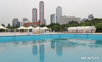 ソウル市瑞草区の蚕院漢江公園プールに20日、サンベッドなどが設置されていた。ソウル市漢江事業本部は23日から8月20日まで、トゥクソム、クァンナル、蚕院各地区の漢江野外プールや楊花地区、蘭芝地区の水..