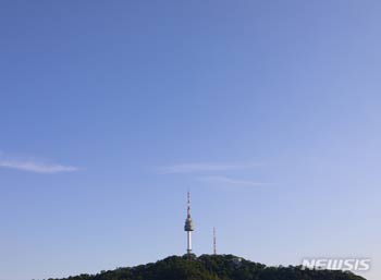 好天となった29日、ソウル市中区から望むソウルの空は青く晴れていた。