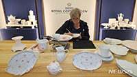 韓国ロイヤルコペンハーゲンが10日、アートスペース3(ソウル市鍾路区)のギャラリーでニューカラー発表を記念した展示を行い、デンマークから匠を招待し、コーラル・コレクションの手描き作業の過程を公開した..