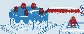 ケーキを切る時、ガスコンロの火で熱した包丁やナイフを使うと、ボロボロにならずにきれいに切れる。お湯に包丁やナイフを浸して熱してから切ってもいい。