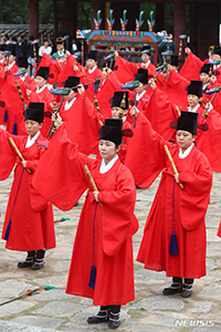 【NEWSIS】7日午後、ソウル市鍾路区の宗廟永寧殿で、「2023宗廟大祭」が開催された。写真は宗廟祭礼楽を演奏する楽士たち。2001年に国連教育科学文化機関(ユネスコ)無形文化遺産に登録された宗廟..