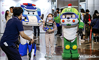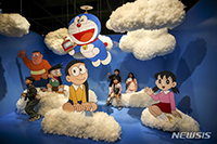 子どもの日に当たる5月5日午前、雨の中、ソウル市竜山区のアイパークモールポップコーンDスクエアで開催された「ドキドキドラえもん展」を訪れた市民たちが、展示物を見て回りながら楽しいひとときを過ごした。