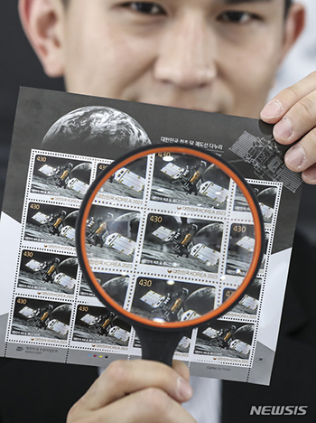【NEWSIS】6日午前、ソウル市中区のソウル中央郵便局切手博物館で、「韓国初の月探査機『タヌリ』の打ち上げ成功を記念する切手」が公開された。