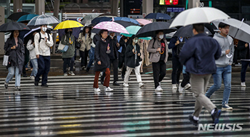 雨が降った5日午前、ソウル市永登浦区の汝矣島乗り換えセンターでは、傘をさして行き交う市民たちの姿が見られた。