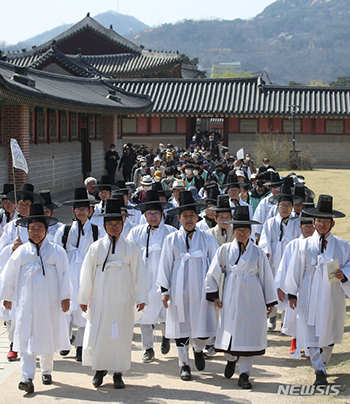 ソウルの景福宮で27日午後、朝鮮王朝時代の儒学者、退渓李滉(イ・ファン)が1569年に国王に辞職の上疏を行って都を去った、最後の帰郷を再現するイベントが行われた。