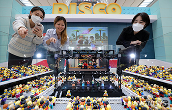 「レゴBTS(防弾少年団)Dynamite」ポップアップストア・オープン初日の7日午前、ソウル市永登浦区汝矣島洞のTHE HYUNDAI SEOULで観覧客たちが店内を見て回った。前日に現代百貨店板..