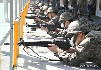 新型コロナで中断していた韓国軍の予備役軍人訓練が4年ぶりに正常化した6日、光州市北区の予備軍訓練場で、予備役軍人らが実射撃訓練を行っているところ。