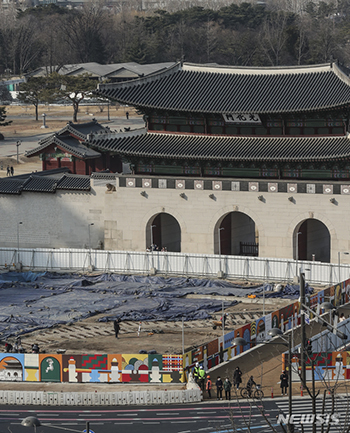 6日午後、ソウル市鍾路区の光化門月台および周辺部の発掘現場で、関係者が現場調査を行っている様子。ソウル市と文化財庁は今月16日から18日まで三日間、光化門月台および周辺部の発掘調査現場を一般市民に公開..