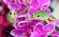 二十四節気の一つ「啓蟄(けいちつ)」まであと四日と迫った2日午後、京畿道農業技術院(京畿道華城市機山洞)の昆虫資源センターでは、カエルがさわやかに咲いた春の花の上に座っていた。