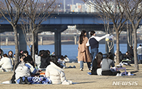 【NEWSIS】穏やかな天気となった26日、ソウル・汝矣島の漢江市民公園に集まった人々。