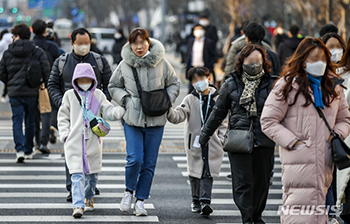 【NEWSIS】23日午前、ソウル市内の世宗大路近くを歩く人々。気象庁では、ソウル市内の最低気温を氷点下1.7℃、最高気温が6-13℃と予想、日中は暖かくなるため一日の気温差に注意するよう呼びかけて..