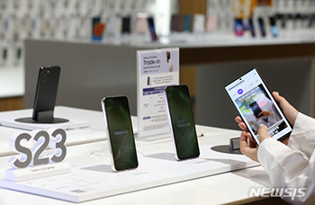 サムスン電子のGalaxy(ギャラクシー)S23シリーズが正式に発売された17日午前、ソウル市瑞草区のサムスン・ディライトショップでは、来店客らがGalaxy S23シリーズを見ていた。