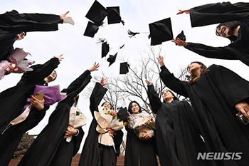7日、京畿道水原市の水原女子大学仁済キャンパスで開かれた学位授与式で、記念撮影をして思い出を残す卒業生らの様子。