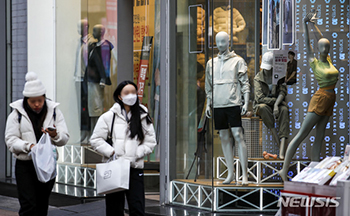 ソウル市中区の繁華街・明洞で31日、アパレルショップのショーウインドーには春物が陳列されていた。